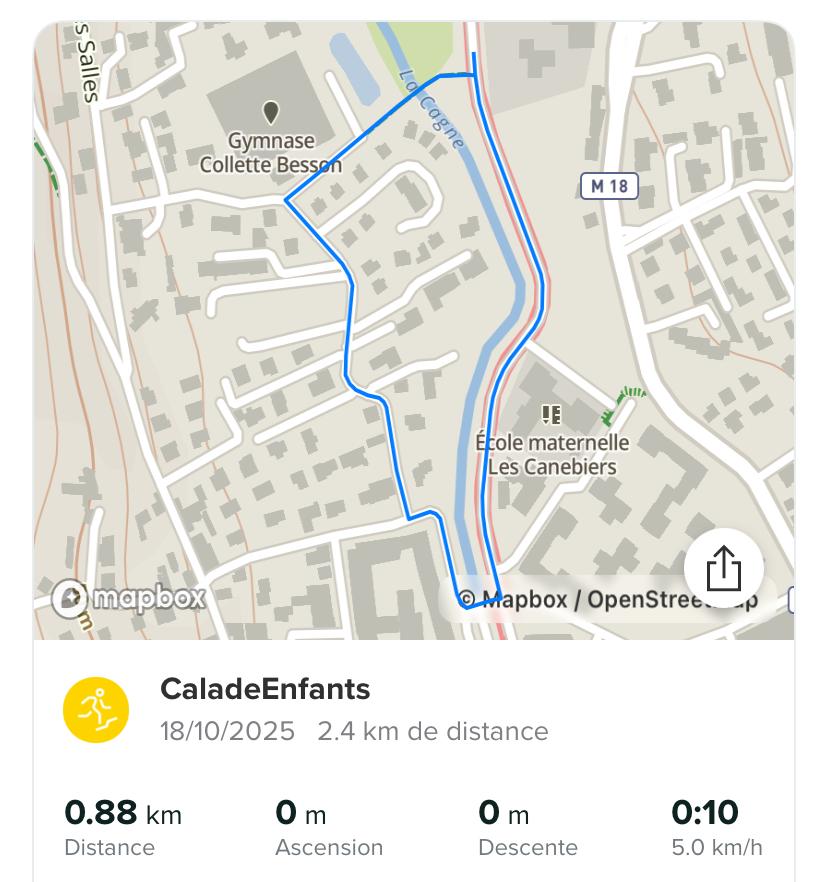 Deux courses vous sont également proposées. Une boucle (800m) correspond à emprunter les voies suivantes: Avenue Marcel Pagnol, Rue Soutine, Chemin des Canebiers et Passage du Bellaud
